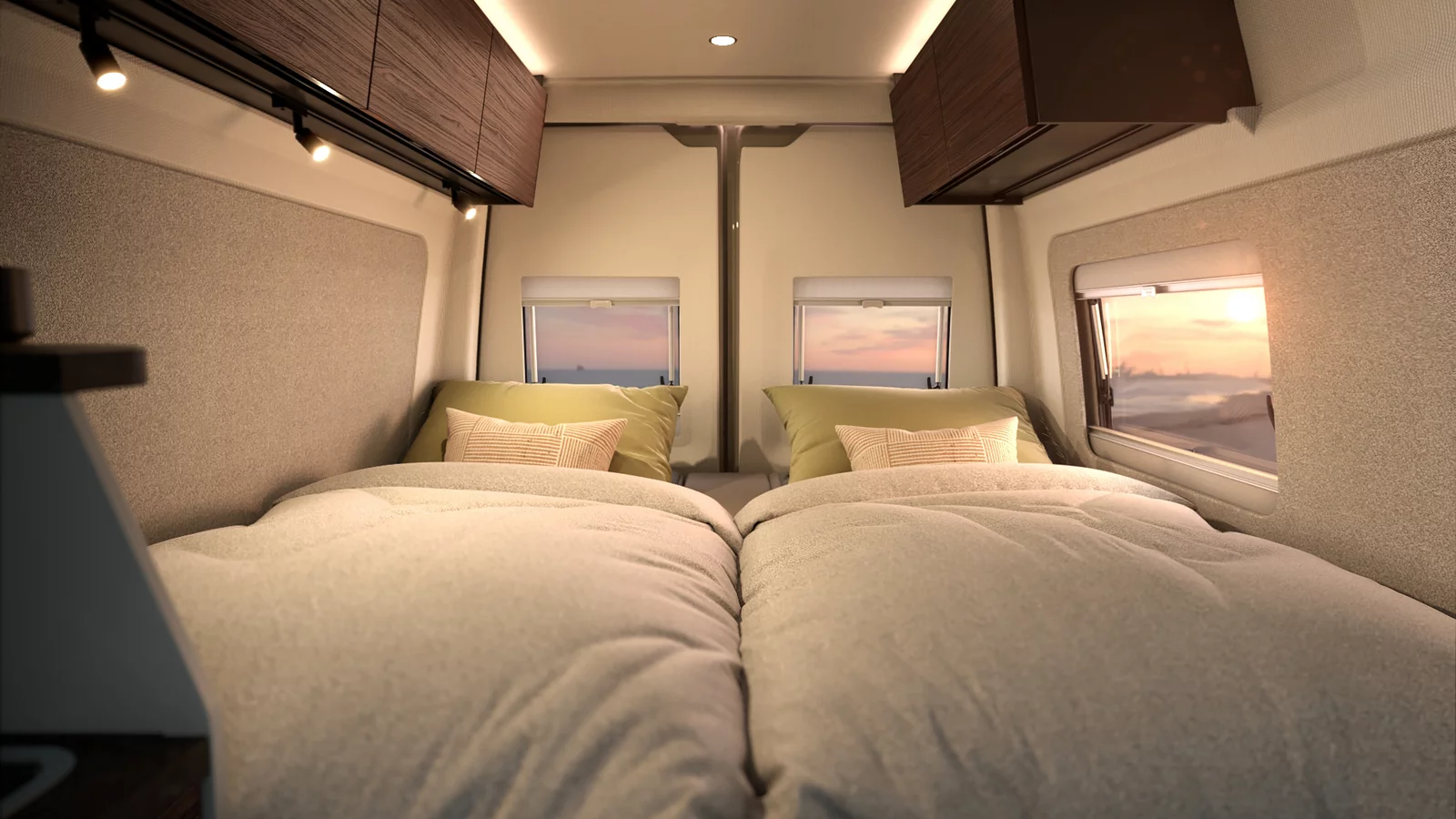 Habiton HM łączy kompaktową konstrukcję i najwyższy komfort, oferując dwa łóżka o długości poniżej sześciu metrów oraz opatentowany system przesuwnych łazienek dla maksymalnej efektywności wykorzystania przestrzeni.