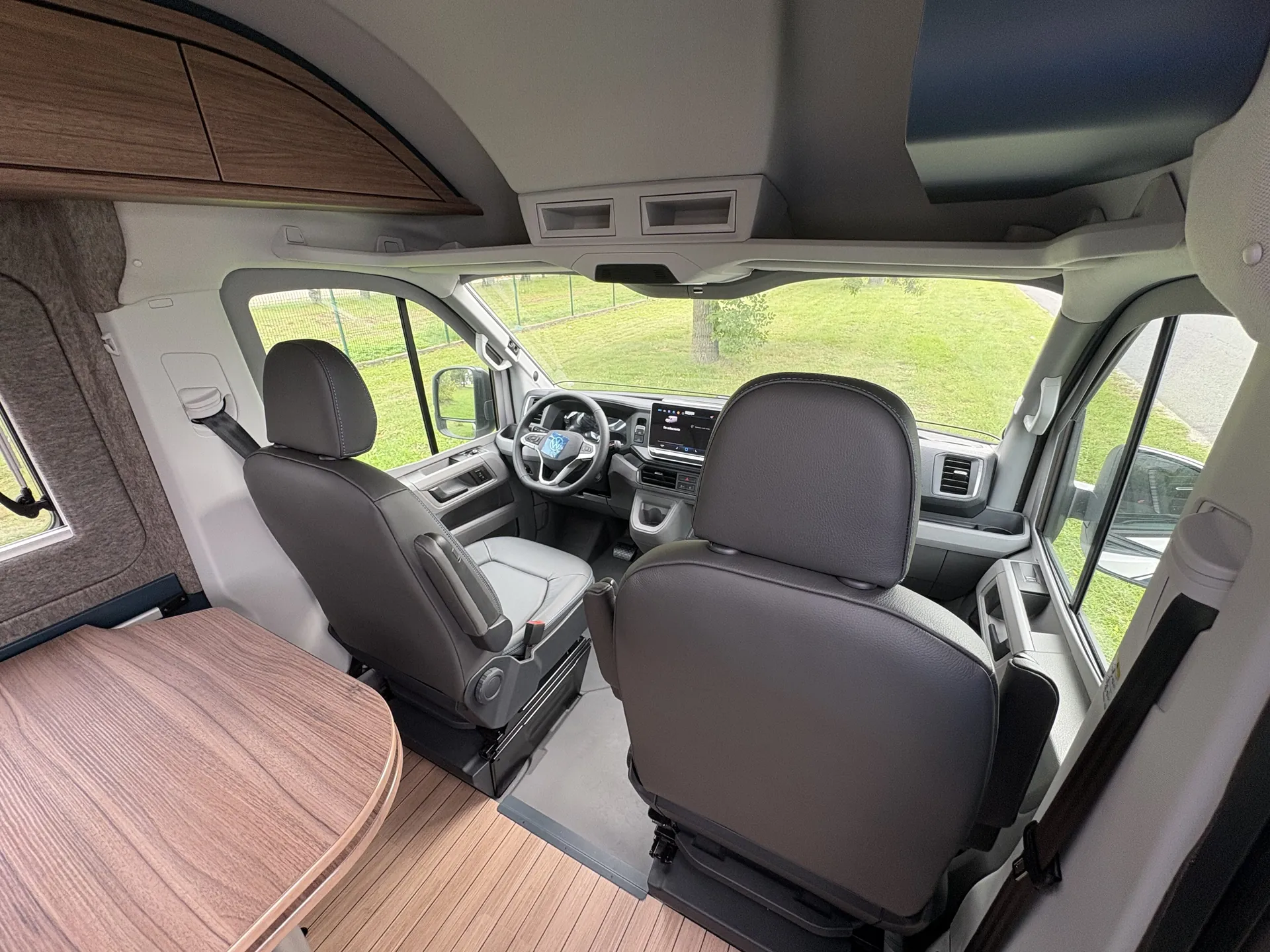 Obrotowy fotel kierowcy i pasażera z przodu, podłokietniki i kanapa obite tkaniną do salonu