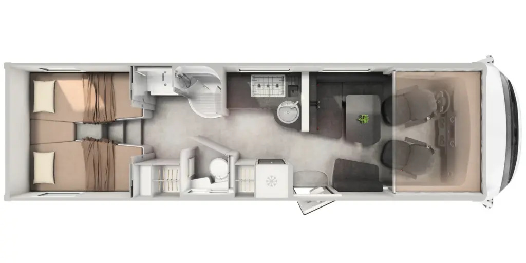 Bardzo niski schowek na butlę gazową umożliwiający łatwą wymianę butli z wygodnym dostępem przez zewnętrzne drzwi