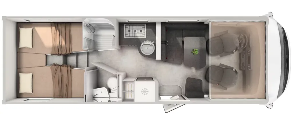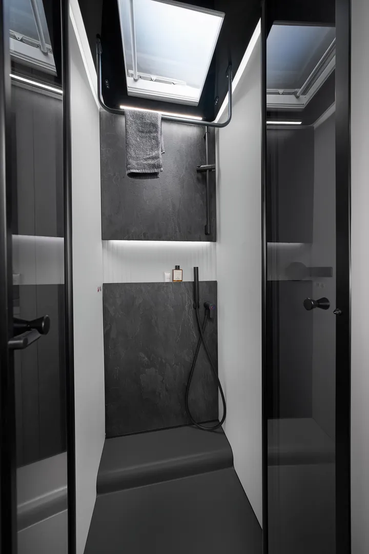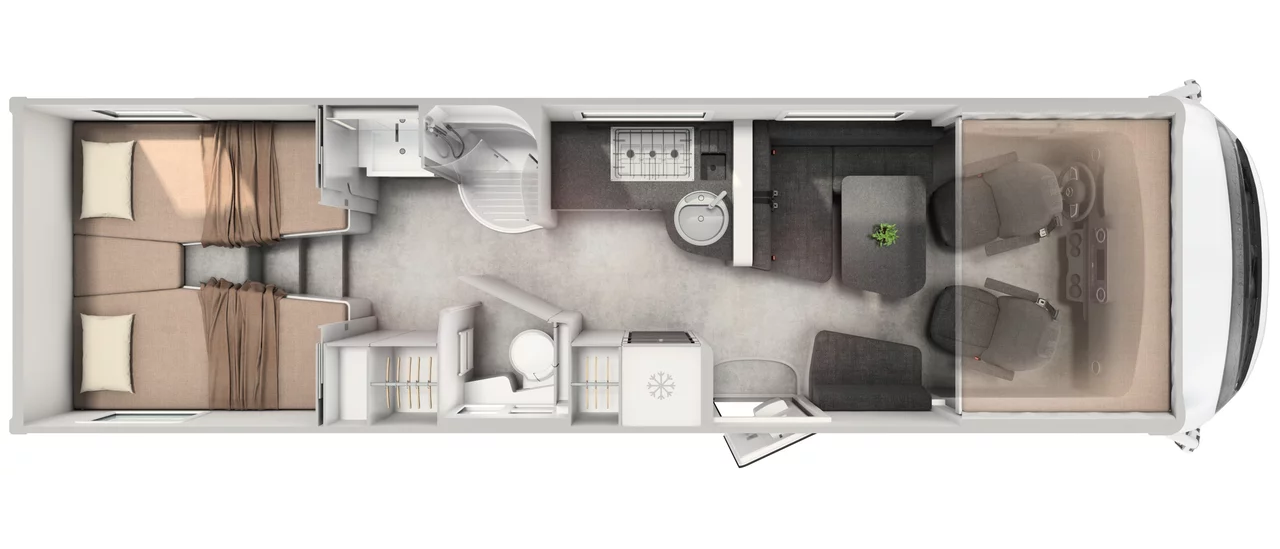 Podwójna podłoga o wysokości 36 cm z funkcją przeładunku, w tym wolna od schodów podłoga w części mieszkalnej - dla większej przestrzeni do przechowywania, lepszej izolacji i absolutnej odporności na zimę w serii