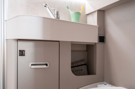 Ponadto nowy Exsis zachwyca całkowicie nową koncepcją wnętrza, która oferuje wyjątkowo duże poczucie przestrzeni dzięki lekkim, płynnym meblom. Dlatego też jest przełomowy dla nowego języka projektowania HYMER.