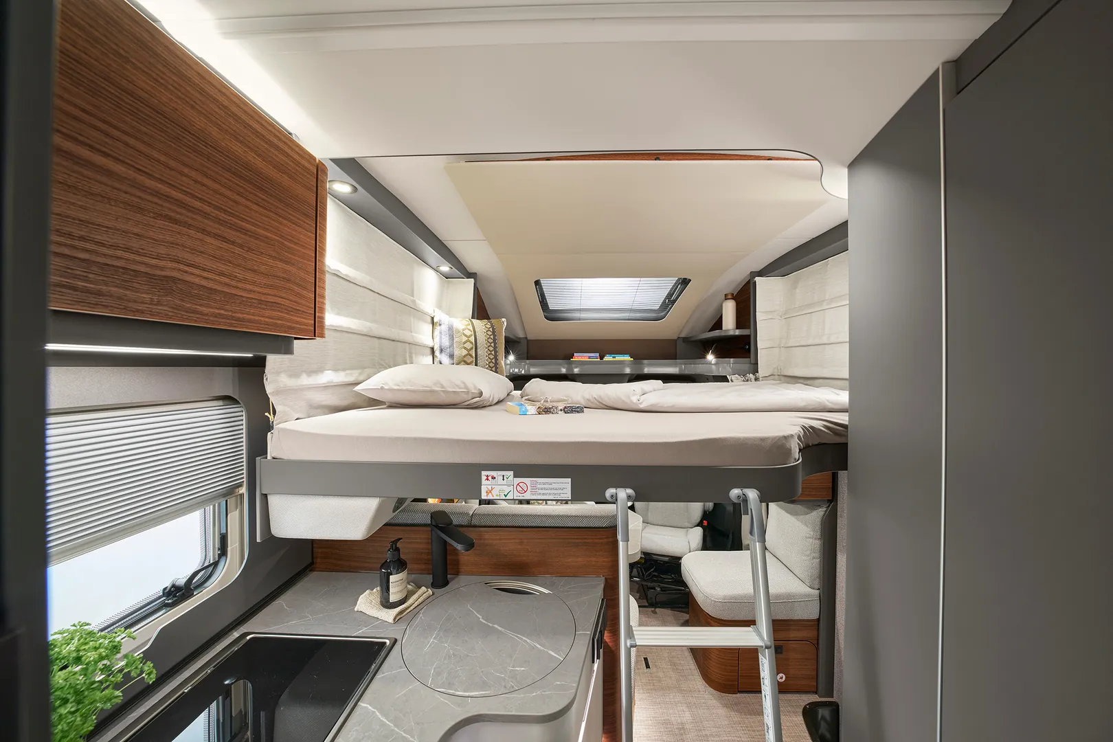 Lekka, stabilna karoseria z dodatkowym bezpieczeństwem i komfortem - to wynik udanej współpracy między Mercedes-Benz i HYMER. Jako pierwszy na świecie częściowo zintegrowany kamper, nowy HYMER B-Class ModernComfort T zachwyca połączeniem nowego auta Sprinter firmy Mercedes-Benz z nagradzanym podwoziem SLC opracowanym przez HYMER. Dzięki wyjątkowo lekkiej i stabilnej konstrukcji oraz dodatkowemu bezpieczeństwu i komforcie jazdy, z tym sportowym i eleganckim towarzyszem masz gwarancję, że zawsze będziesz o jeden krok do przodu w każdej podróży - i to bezpiecznie poniżej 3,5 tony.