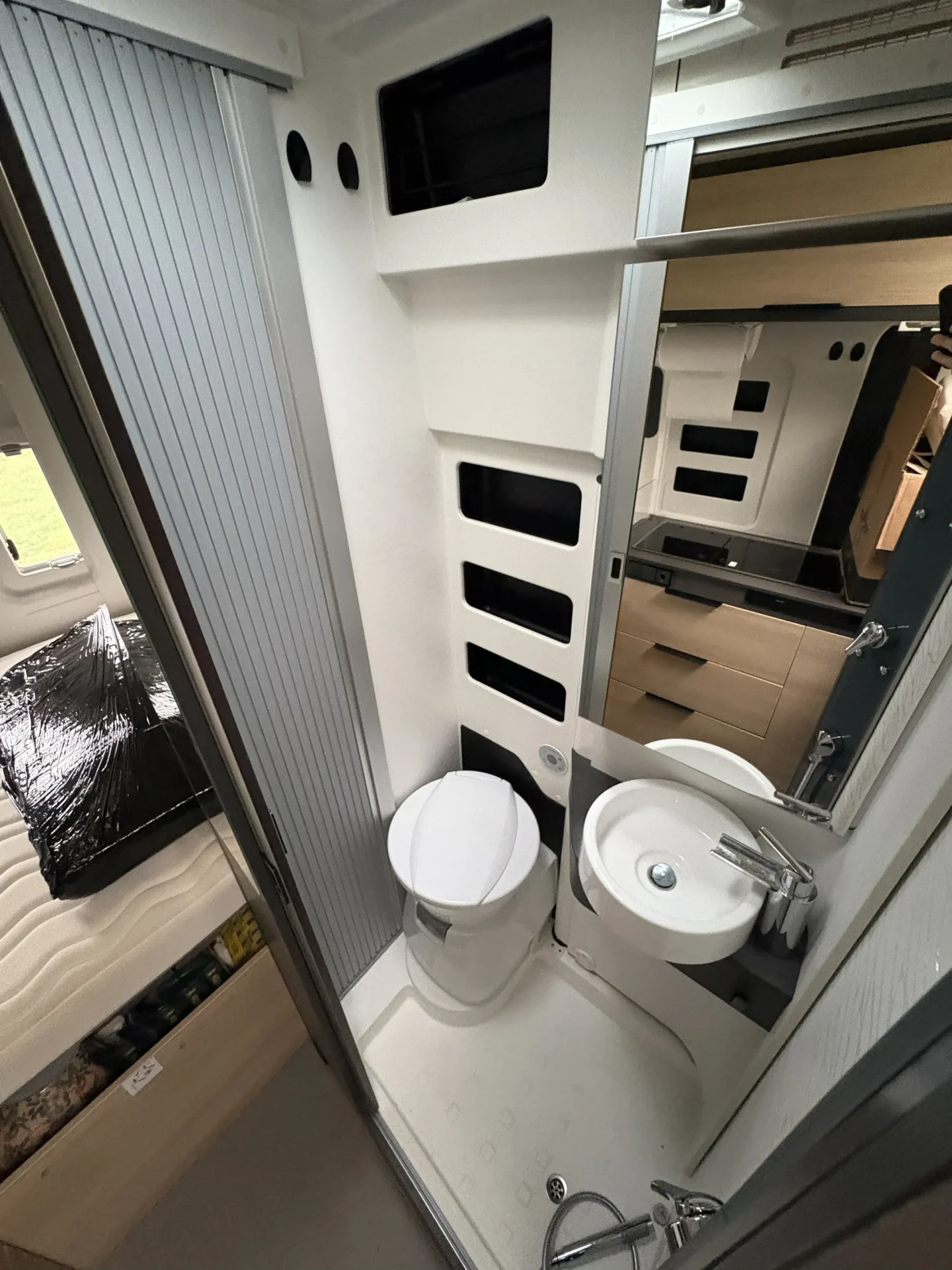 Łazienka z prysznicem typu vario z toaletą Dometic